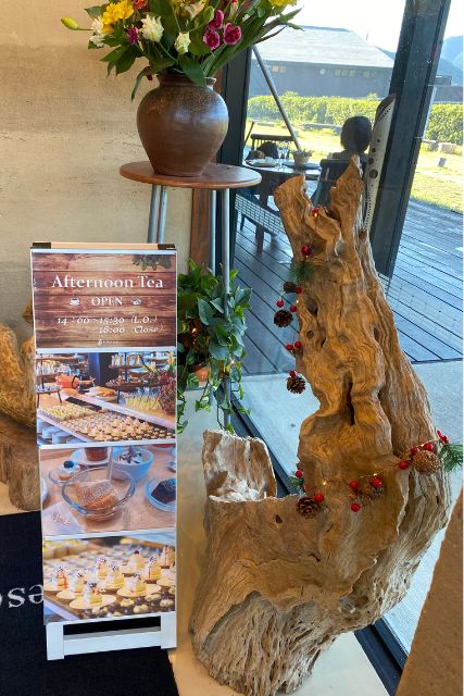 アフタヌーンティーはフロントや売店のある場所から橋を渡った先にある【馳走庵】という建物で開催されます!