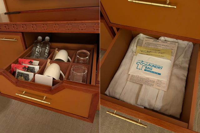 室内設備フラットテレビ(49型)/ 冷蔵庫 / ヘアドライヤー / 自動モーニングコール / エアコン / 金庫 / 靴べら / 湯沸かしポット / シャワー付きトイレ / カードキーシステム / 館内着 / 空気清浄機(和室以外) / ワッフルローブ(ジュニアスイートのみ) / 檜風呂(和室のみ) / ヘルスメーター(和室のみ)アメニティ綿棒 / 歯ブラシ / ボディータオル / フェイスソープ / シャンプー(DHC オリーブゴールド)/ リンス(DHC オリーブゴールド)/ ボディーソープ(DHC オリーブゴールド) / スリッパ / ヘアブラシ/ シューシャインペーパー / ボディースポンジ / ミネラルウォーター (出典:公式ホームページ)