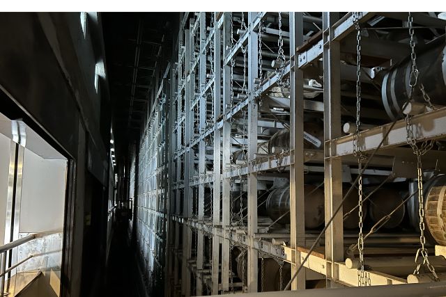 貯蔵しているスペースは暗く、見学用通路のみ最低限の明かりで照らされていました!