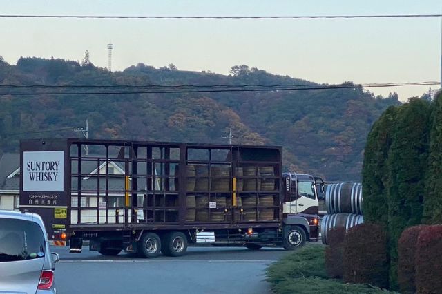 帰り道には、樽を運ぶレアなトラックを発見!