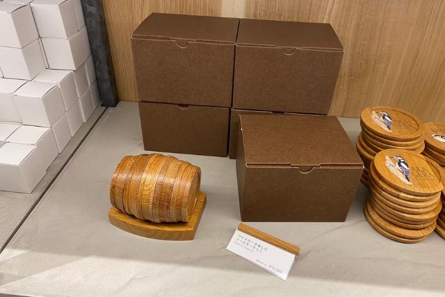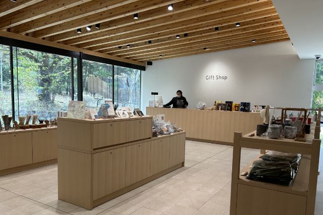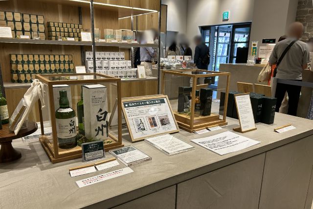 この「ビジターセンター ギフトショップ」には、ウイスキーをよりおいしく愉しむためのグラスやサントリー天然水のラベルをあしらったグッズ、白州の森でしか買えない商品が数多く並んでいます!
