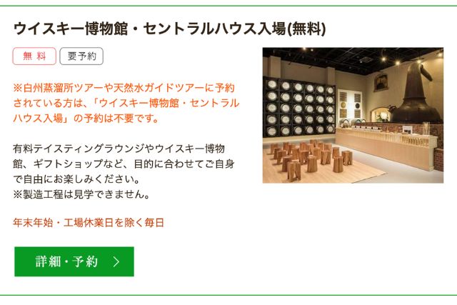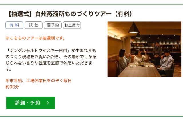 私たちが参加したのは3つ目の【抽選式】白州蒸溜所ものづくりツアー(有料)です!