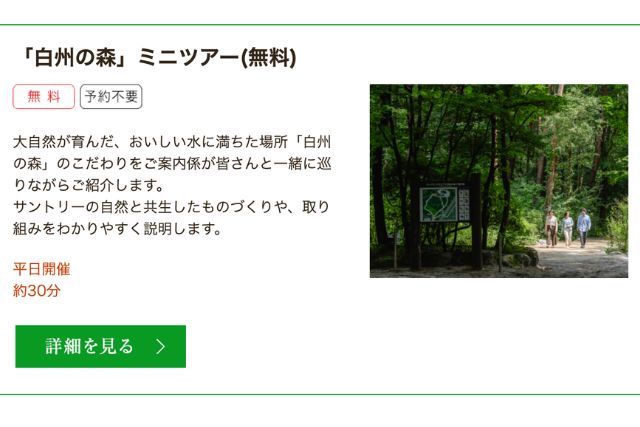 サントリー白州蒸溜所ものづくりツアー 90分