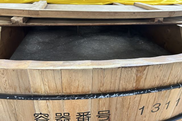まだ鼻に匂いが残ったままバスへと戻ると、お次は完成した白州が 貯蔵 されている建物へ!